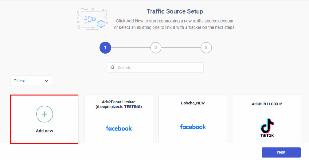 Step 2: Under Traffic Source Setup, click the Add New button.