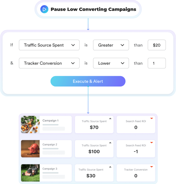 Build automation rules based on accurate AdsBridge data. Pause ads with no conversions, scale campaigns with positive ROI, and more, all on autopilot.