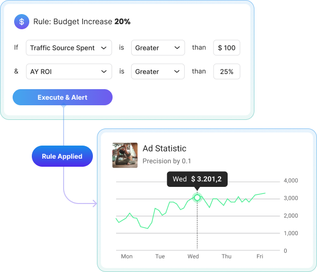 Apply automation rules to pause, activate, clone, and change bids/budgets based on performance.