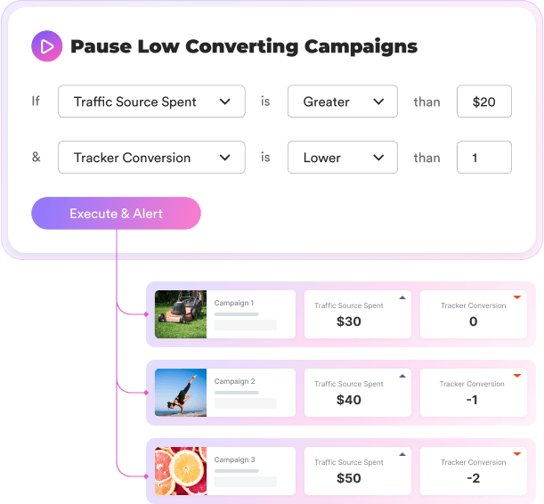 Utilize your CPV Lab data to apply over 30 different automation rules that will automatically pause, activate, clone, and update bids & budgets based on performance metrics.