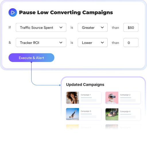 Say goodbye to mundane campaign management tasks. Use ThriveTracker revenue and conversion data to automate your performance marketing campaigns.